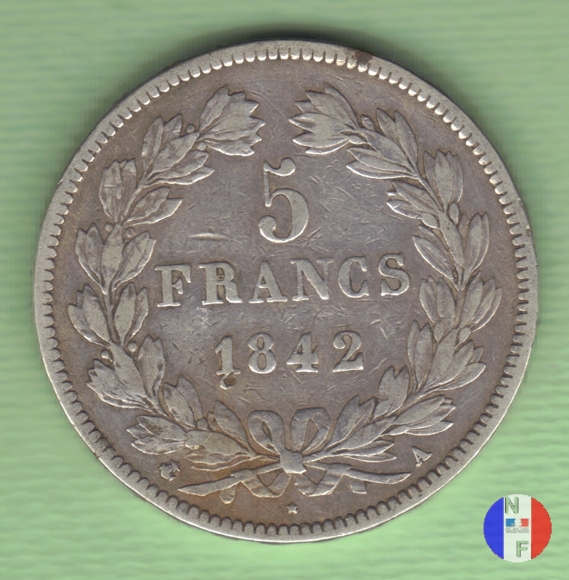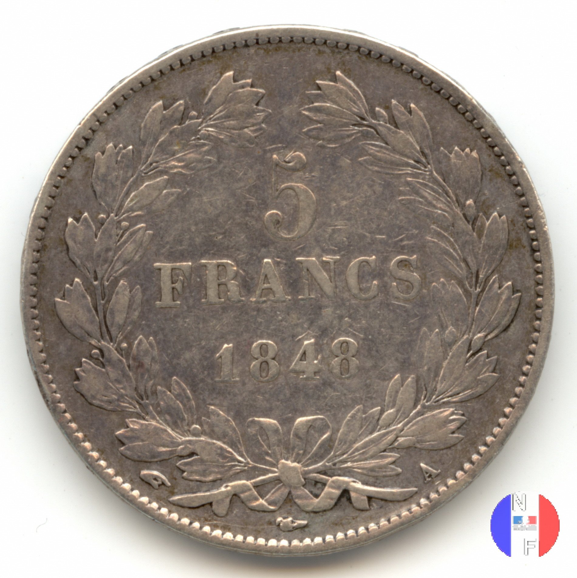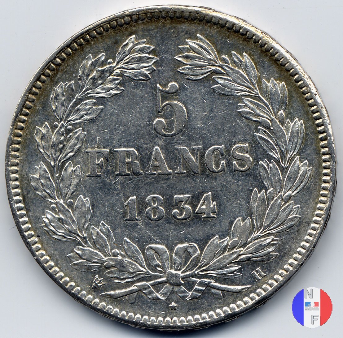 Busto (volto a destra) del re Luigi Filippo cinto da una corona di quercia Corona d'alloro