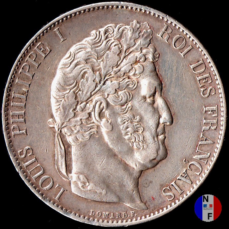 Legenda: LOUIS PHILIPPE I - ROI DES FRANÇAIS - DOMARD. F. Legenda: 5 FRANCS - (anno) - (sz)