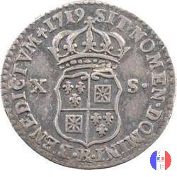 | Incisore Norbert Roettiers.Moneta emessa a seguito della dichiarazione del dicembre 1718 per sostituire le monete da i/10 di scudo di Francia e Navarra.Per l'indicazione degli indici di rarità ci siamo riferiti al volume V.Gadoury,Monnaies Royales Francaises.ed.2012 | ||||||||
