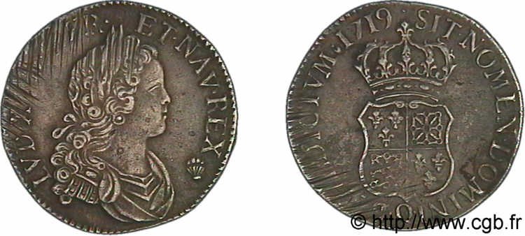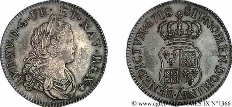 | Incisore:Norbert Roettiers. Emesso a seguito dell'editto del maggio 1718. Corso legale 3 livres,malgrado la diminuzione del peso in argento.Per l'indicazione degli indici di rarità ci siamo riferiti al volume V.Gadoury,Monnaies Royales Francaises.ed.2012 | ||||||||