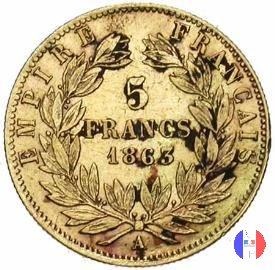 Legenda: NAPOLEON III EMPEREUR - BARRE Legenda: 5 FRANCS - (anno) - EMPIRE FRANÇAIS - (sz)