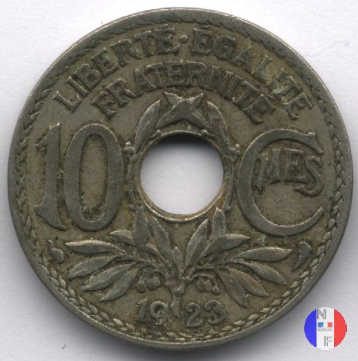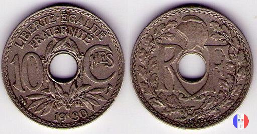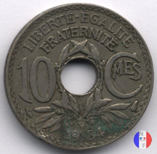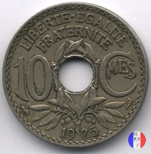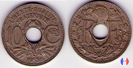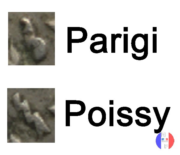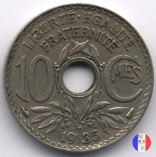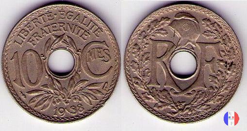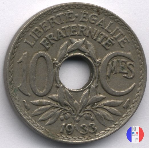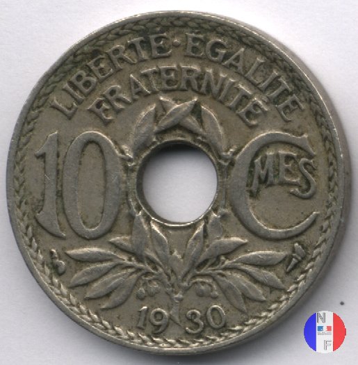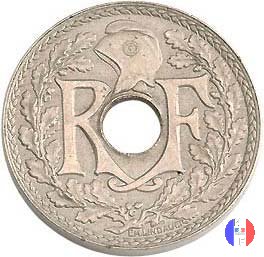 Per tutte le date esistono alcune varianti rigurdanti i buchi: essi possono essere larghi o buchi stretti e, per errori di fabbricazione, si possono trovare anche buchi decentrati e monete non bucate. Questa moneta fu demonetizzata il 31 luglio 1947. SEGNI DI ZECCA (sotto l'1): cornucopia = Parigi / fulmine = Poissy | |||||||||||||||