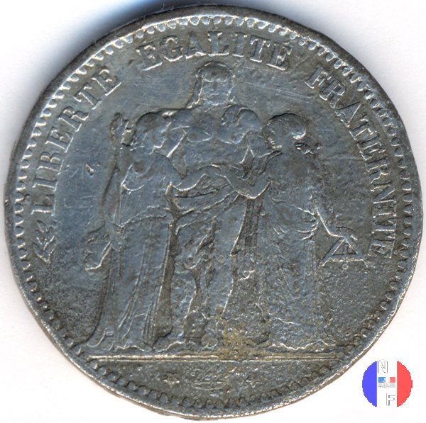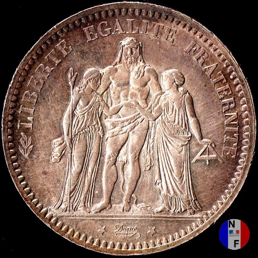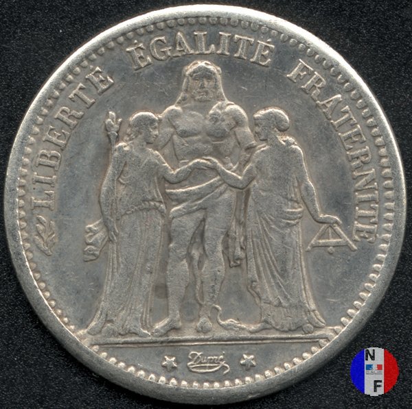 Legenda: LIBERTÉ ÉGALITÉ FRATERNITÉ - Dupré Legenda: RÉPUBLIQUE FRANÇAISE* - 5 FRANCS - (anno) - (sz)