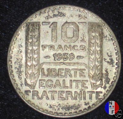 Legenda: REPUBLIQUE FRANÇAISE - P.TURIN Legenda: 10 FRANCS - (anno) - LIBERTE EGALITE FRATERNITE