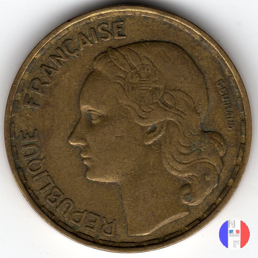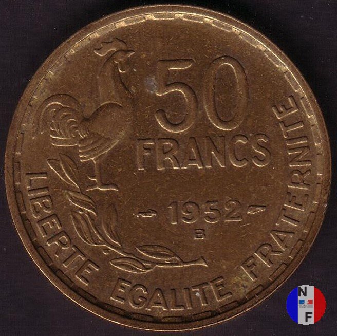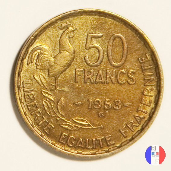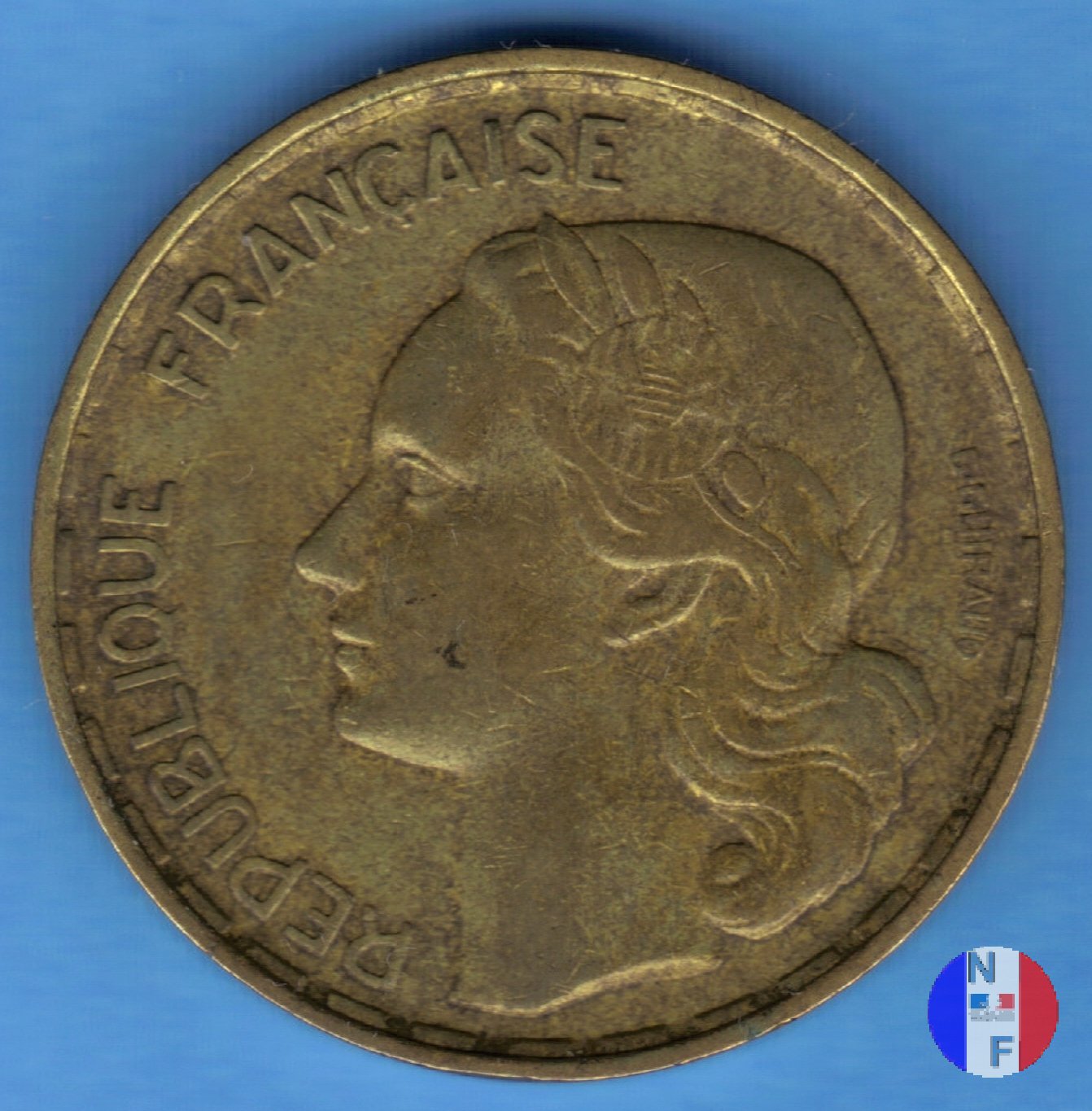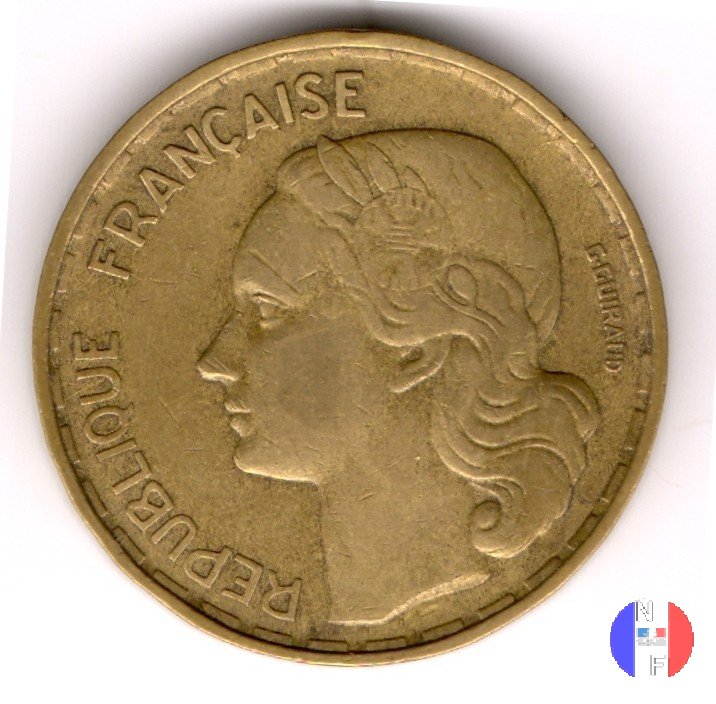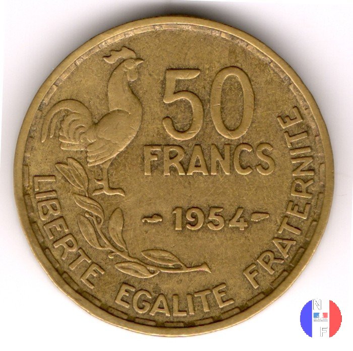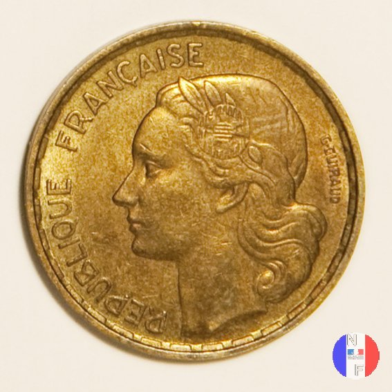 Questa moneta fu demonetizzata il 3 agosto 1966 e fu ritirato piú dell'80% dei pezzi prodotti. SEGNI DI ZECCA: B = Beaumont le Roger / senza segno di zecca = Parigi | |||||