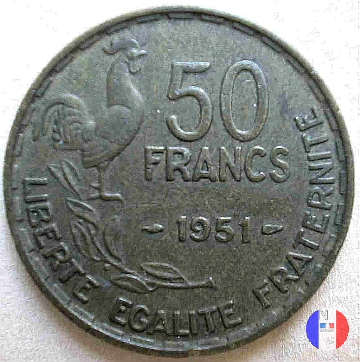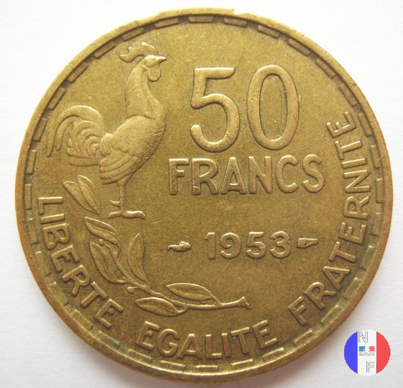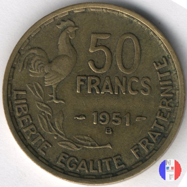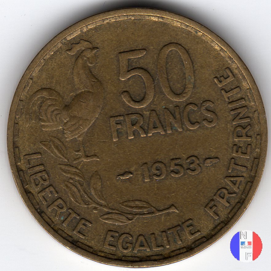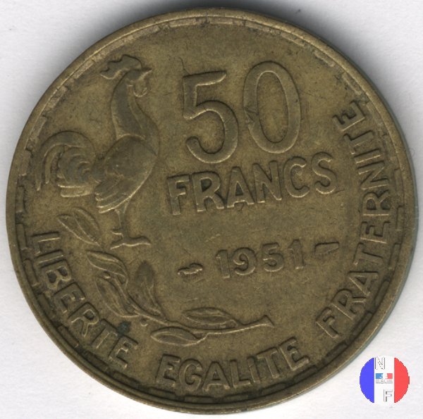 Questa moneta fu demonetizzata il 3 agosto 1966 e fu ritirato piú dell'80% dei pezzi prodotti. SEGNI DI ZECCA: B = Beaumont le Roger / senza segno di zecca = Parigi | |||||