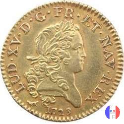 | Incisore: Norbert Roettiers.Valore legale 27 Livres,fabbricata in base all'editto del 20 agosto 1723,emessa solo su tondello nuovo.Per l'indicazione degli indici di rarità ci siamo riferiti al volume V.Gadoury,Monnaies Royales Francaises.ed.2012 | ||||||||