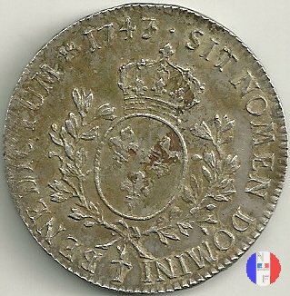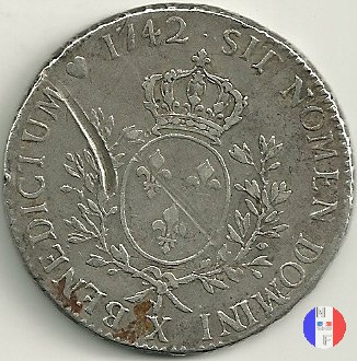 Incisore :J.C.Roettiers.Corso legale 6 livres. Emesso a seguito dell'editto del gennaio 1726 e del decreto del marzo 1741.