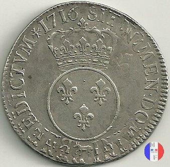 Incisore : Norbert Roettiers. Corso legale 5 livres,emessa a seguito dell'editto del dicembre 1715. Le monete riformate sono riconoscibili per una rosetta sotto il busto del re.Per l'indicazione degli indici di rarità ci siamo riferiti al volume V.Gadoury,Monnaies Royales Francaises.ed.2012