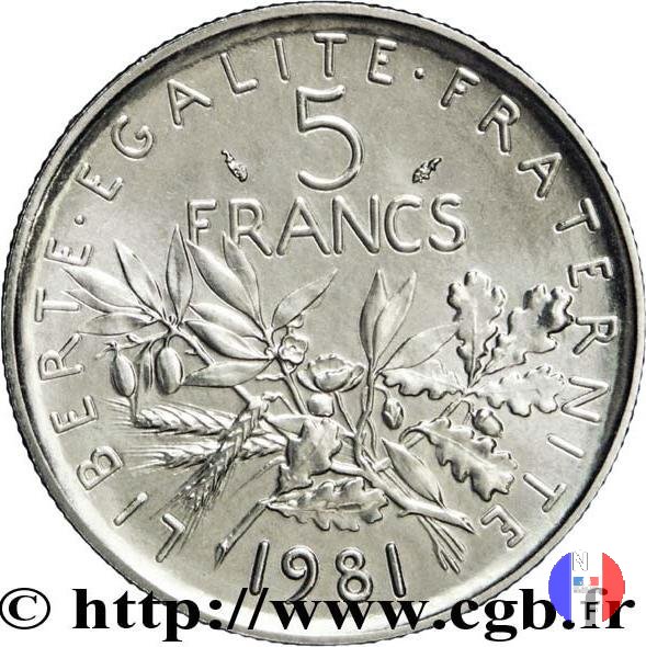5 franchi seminatrice - cupronickel (Moneta)