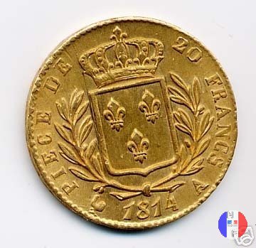Per la data 1814 esistono per tutte le zecche esemplari con un 4 corto e con un 4 lungo SEGNI DI ZECCA - A = Parigi / B = Rouen / K = Bordeaux / L = Bayonne / Q = Perpignan / W = Lilla | ||||||||||||||