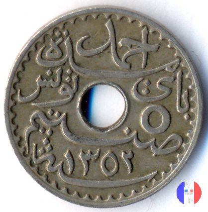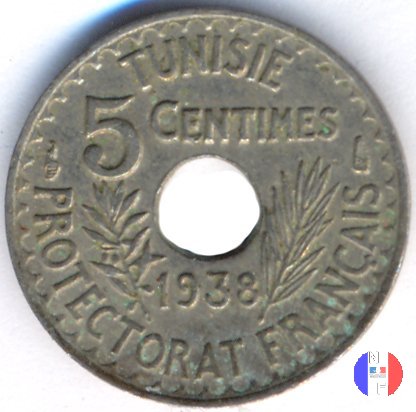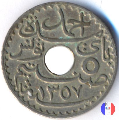 Legenda: Scritta in caratteri e cifre arabi Legenda: TUNISIE - 5 CENTIMES - PROTECTORAT FRANÇAIS - (anno)