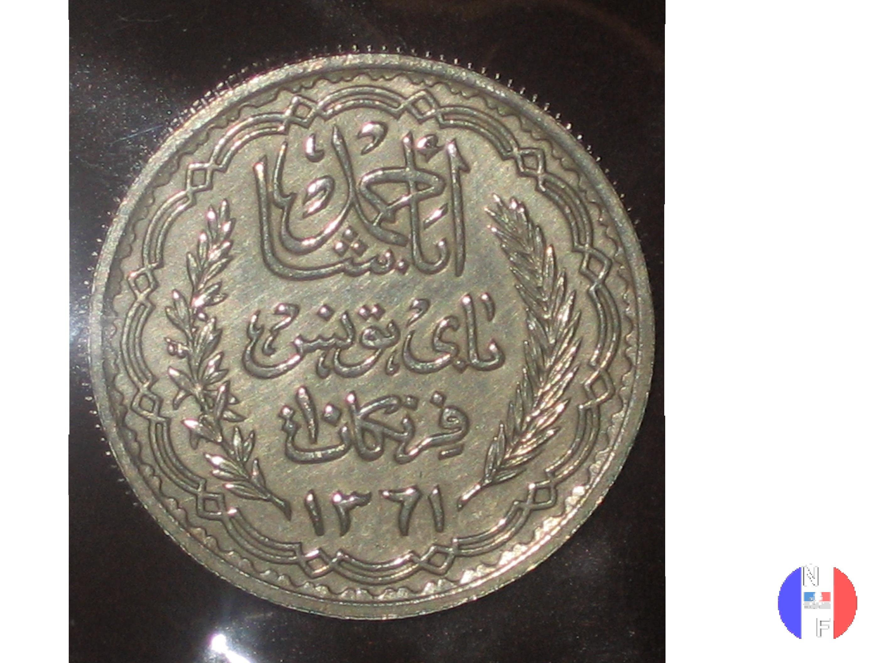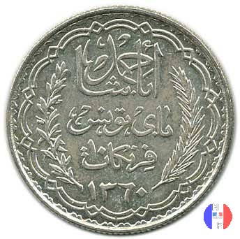 | La scritta in arabo significa: Ahmad, bey di Tunisi - 10 franchi - (anno islamico) | ||||||||||