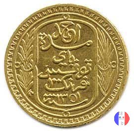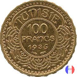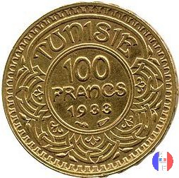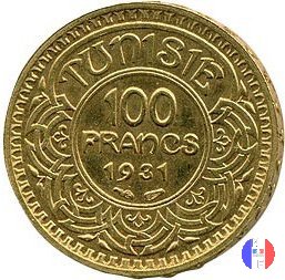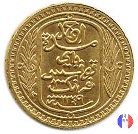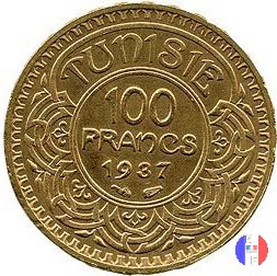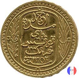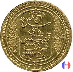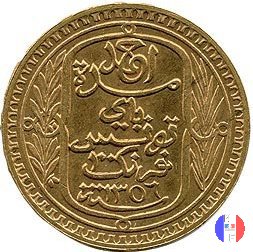 | La scritta in arabo significa: al tempo di Ahmad, bey di Tunisi - 100 franchi - anno (anno islamico) | |||||
