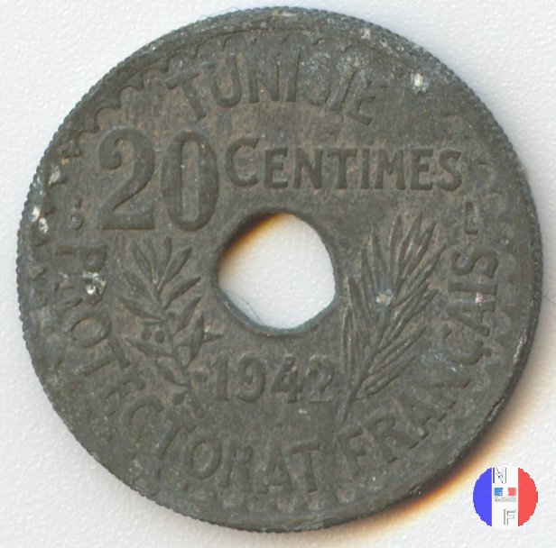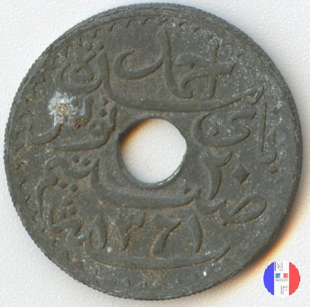 | La scritta in arabo significa: al tempo di Ahmad, bey di Tunisi - 20 centesimi - anno (anno islamico) | |||||