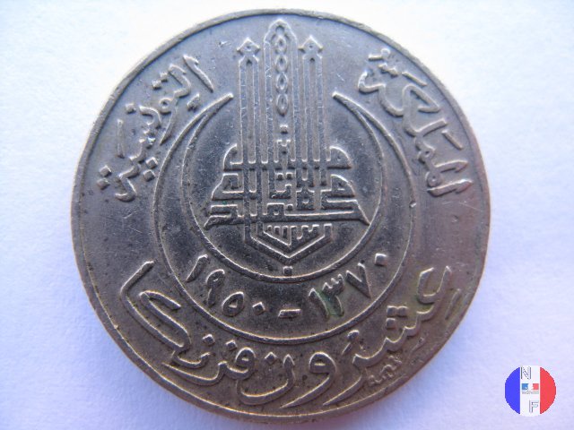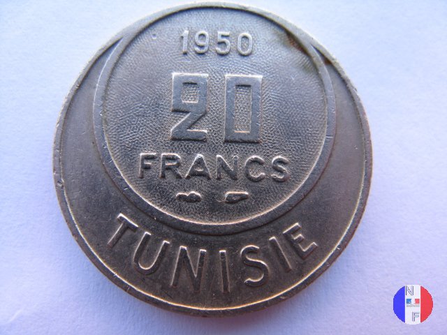 | La scritta in arabo significa: Regno di Tunisia - 20 franchi - (anno gregoriano) - (anno islamico) | |||||||||||||||