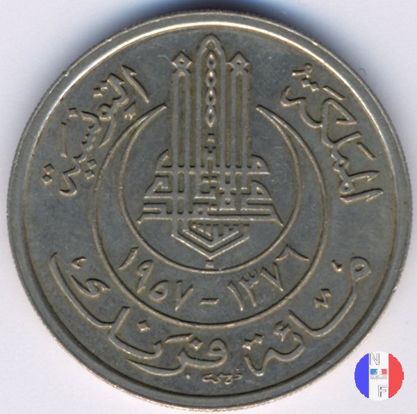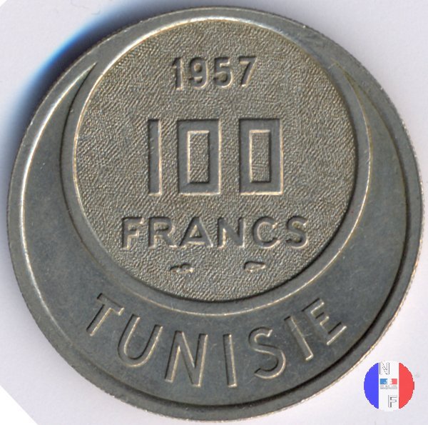 | La scritta in arabo significa: Regno di Tunisia - 100 franchi - (anno gregoriano) - (anno islamico) | |||||||||||||||