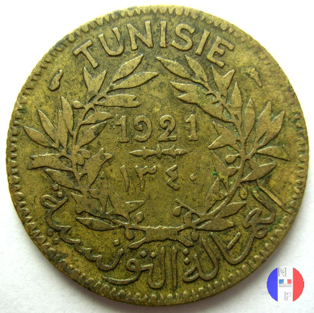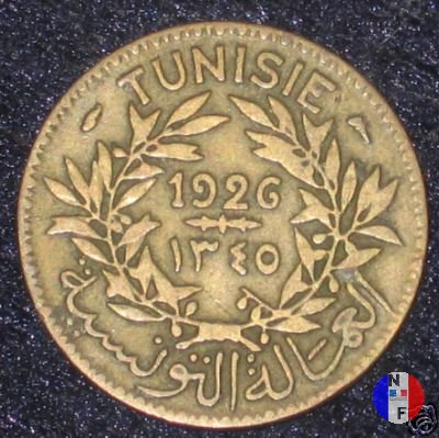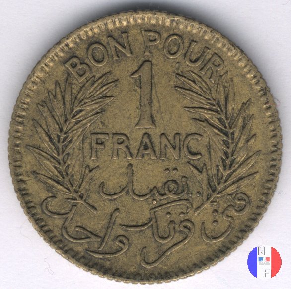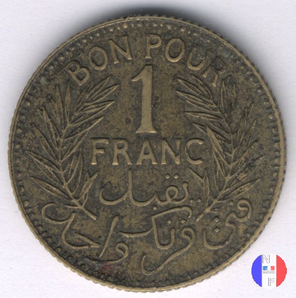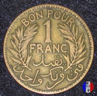 La scritta in arabo al dritto significa: territorio della Reggenza di Tunisi La scritta in arabo al rovescio significa: è accettato per franchi uno | |||||||||