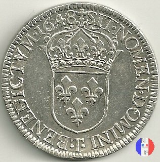 Coniata a seguito dell'editto del settembre 1641.Valore legale 3 Livres o 60 Sols. Per l'indicazione degli indici di rarità ci siamo riferiti al volume V.Gadoury,Monnaies Royales Francaises