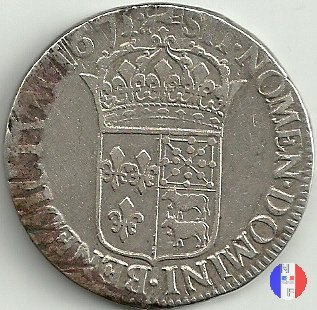 Incisore Coniata a seguito dell'editto del settembre 1641.Valore legale 3 Livres o 60 Sols. Per l'indicazione degli indici di rarità ci siamo riferiti al volume V.Gadoury,Monnaies Royales Francaises | ||||||||