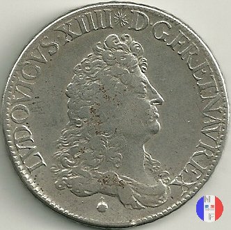 Incisore :Joseph Roettiers. Coniata a seguito dell'editto del settembre 1685.(editto di Chambord) Valore legale 4 Livres o 80 Sols.Questa moneta doveva circolare nei nuovi territori recentemente annessi:Flandre,Hainaut,Cambrèsis e Luxembourg.Fu quindi costituita la zecca di Lille che però entrò in funzione solo nel 1686.