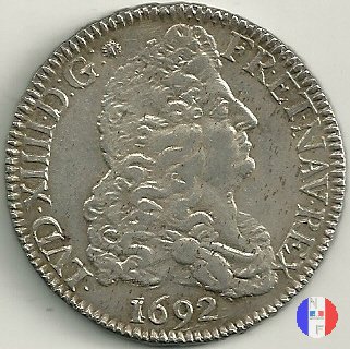 LUD XIV | R | - |   | | 1692 | FR-ECU/27-77 | La Rochelle | H | F.Foderé,inc.M.Briosne | riformata | C | - |   | | 1692 | FR-ECU/27-78 | Lille | L coronato | J.Simon,inc.C.Hardy | riformata | R2 | - | | | 1692 | FR-ECU/27-79 | Limoges | I | J.F.Martin De La Bastide,inc.M.Briosne | | R3 | 7 596 | | | 1692 | FR-ECU/27-80 | Limoges | I | J.F.Martin De La Bastide,inc.M.Briosne | riformata