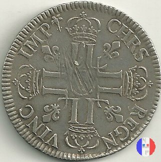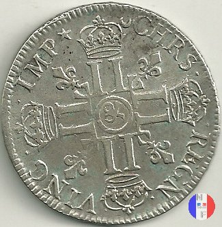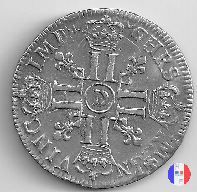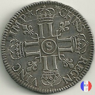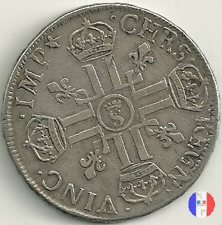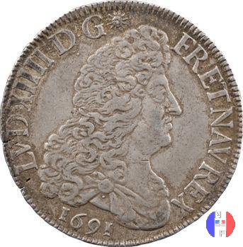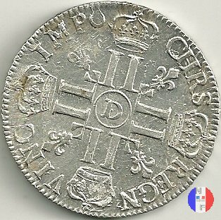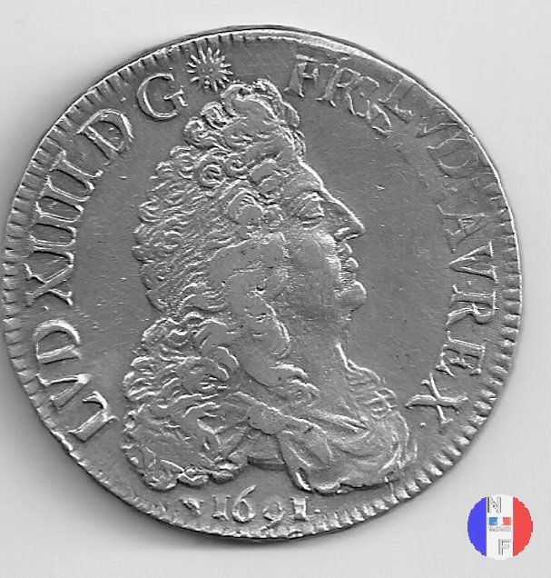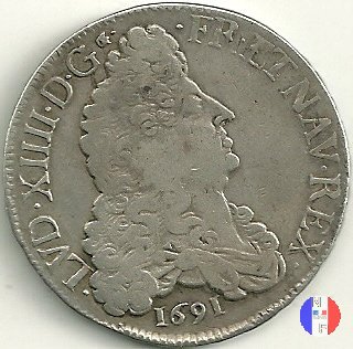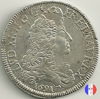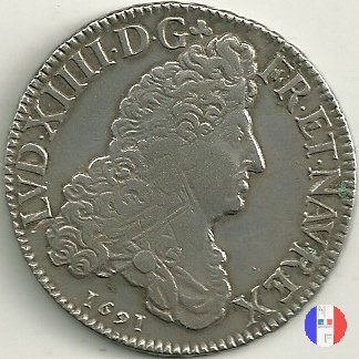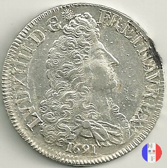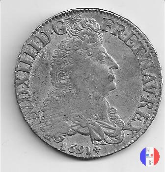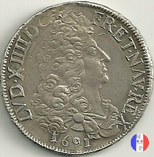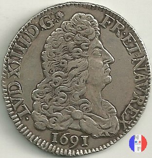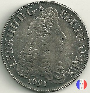 LUD XIV | R2 | - |   | | 1691 | FR-ECU/27-47  | La Rochelle | H | F.Foderé,inc.M.Briosne | riformata | R | - |   | | 1691 | FR-ECU/27-48 | Lille | L coronata | J.Simon,inc.C.Hardy | riformata | C | - |   | | 1691 | FR-ECU/27-49  | Limoges | I | J.F.Martin De La Bastide,inc.M.Briosne | riformata | R | - |   | | 1691 | FR-ECU/27-50 | Lyon | D | P.Rousseau,inc.C.Jacquemin | | R3 | 24 472 | | | 1691 | FR-ECU/27-51 | Lyon | D | P.Rousseau,inc.C.Jacquemin | riformata | C | 746 191 |   | | 1691 | FR-ECU/27-52 | Metz | M coronata | A.Talon,inc.E.Racle | | R3 | 25 092 | | | 1691 | FR-ECU/27-53 | Metz | M coronata | A.Talon,inc.E.Racle | riformata | C | - |   | | 1691 | FR-ECU/27-54 | Montpellier | N | ------,inc.J.Baudeau | | R3 | 52 938 | | | 1691 | FR-ECU/27-55 | Montpellier | N | ------,inc.J.Baudeau | riformata | C | 591 151 |   | | 1691 | FR-ECU/27-56 | Paris | A | H.De La Guerre,inc.N.A.Aury | | R2 | 100 195 | | | 1691 | FR-ECU/27-57 | Paris | A | H.De La Guerre,inc.N.A.Aury | riformata | C | - |   | | 1691 | FR-ECU/27-58 | Poitiers | G | J.Bellanger,inc.----- | riformata