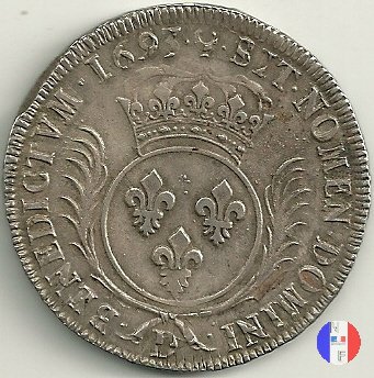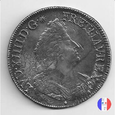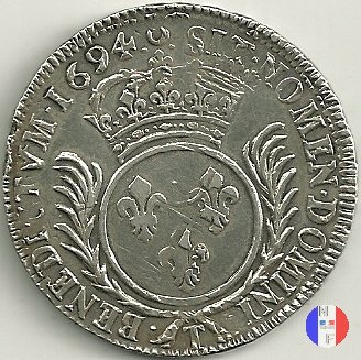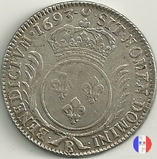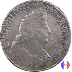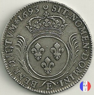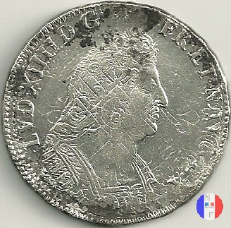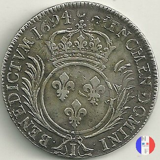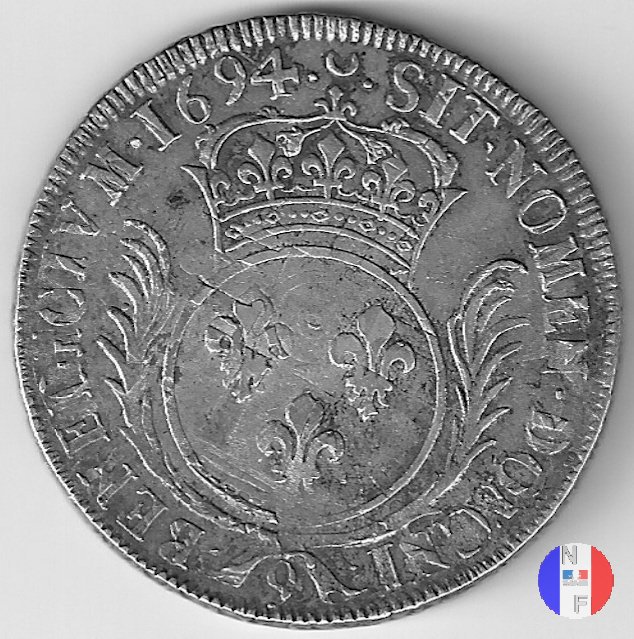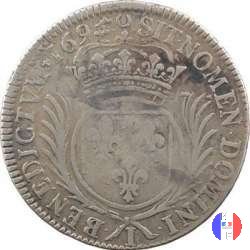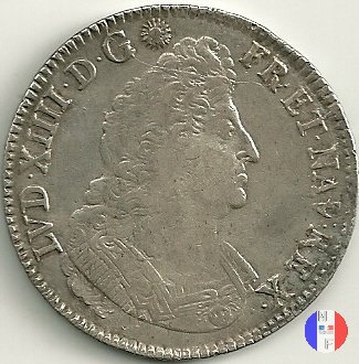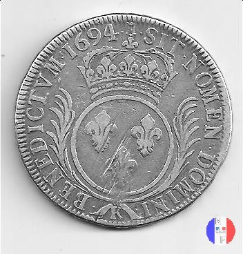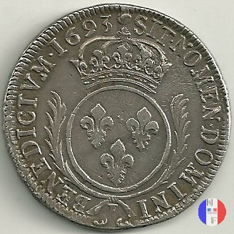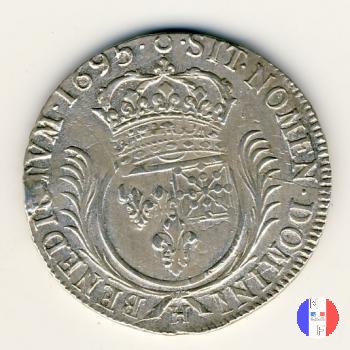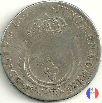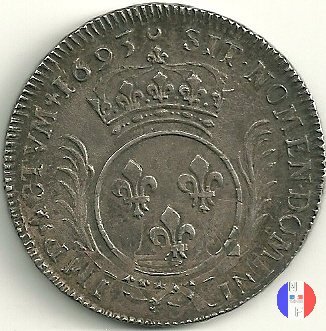Incisore: Joseph Roettiers.Emessa nel quadro della seconda riforma, a seguito dell'editto del settembre 1693.Le monete riformate si identificano per la mezzaluna dopo la data. Il decreto del maggio 1700 farà cessare i riconii, anche per mancanza di vecchie monete da riconiare. La coniazione su tondello nuovo continuerà sino al 1701.Valore legale 3 livres 8 sols. in Alsazia 3 livres 10 sols. Per l'indicazione degli indici di rarità ci siamo riferiti al volume V.Gadoury,Monnaies Royales Francaises.ed.2012
