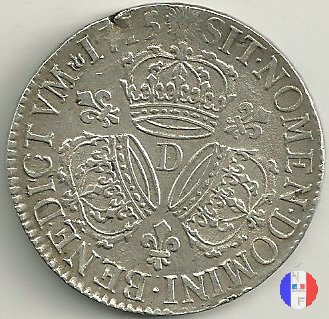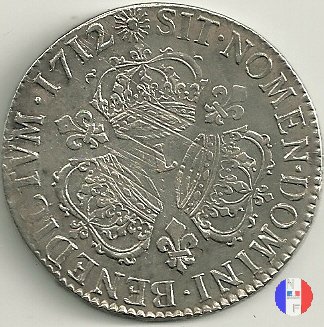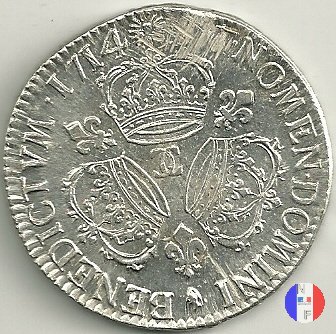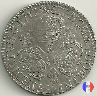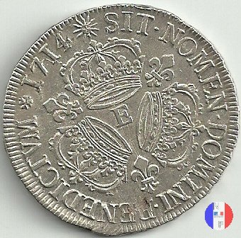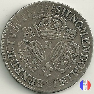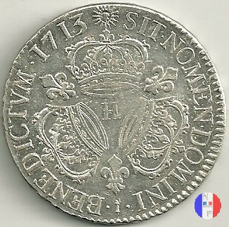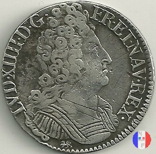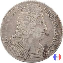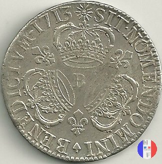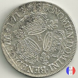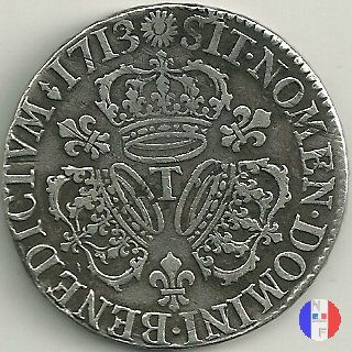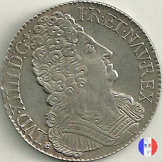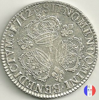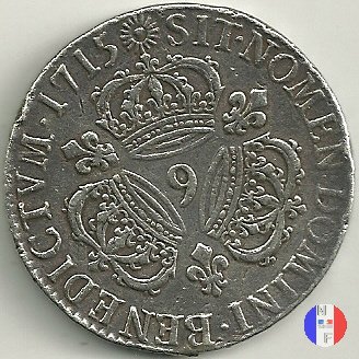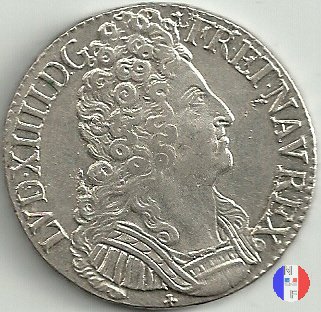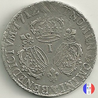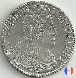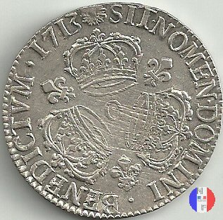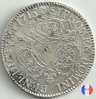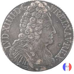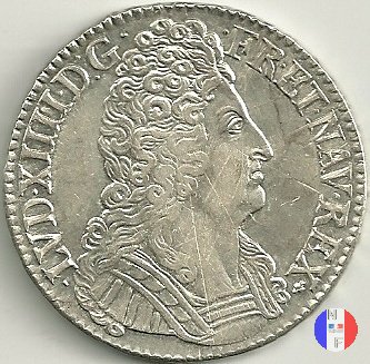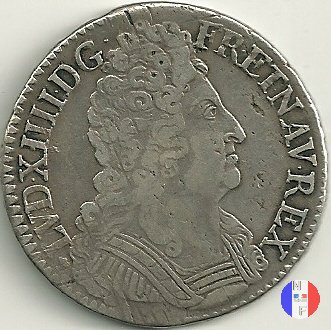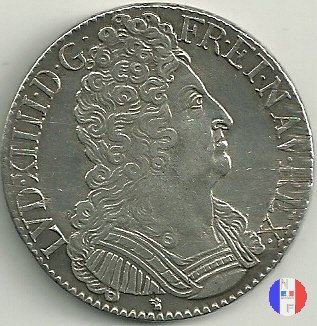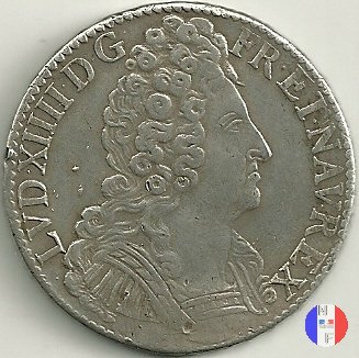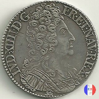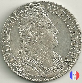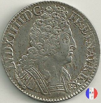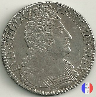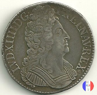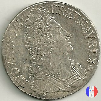 Incisore : Norbert Roettiers.Corso legale 4 livres e 16 sols,emessa a seguito dell'editto dell'aprile 1709.Nel maggio 1709 il suo valore fu aumentato a 5 livres.Tuttavia nel corso degli anni a causa di varie svalutazioni il suo valore si ridusse nel settembre 1715 a 3 livres 10sols.