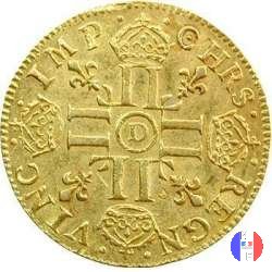 Testa nuda del re a destra. Data sotto il busto. Croce formata da quattro coppie di 2 L coronate,quattro gigli cantonati,al centro il segno di zecca.