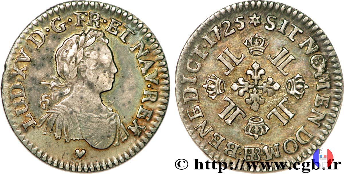 Incisore :Norbert Roettiers.Corso legale 10 sols.Emessa solo su tondello nuovo in base all'editto del settembre 1724 che ordinava la fusione delle monete del tipo "scudo di Francia" il cui uso fu tollerato sino al 1 febbraio 1725.Per l'indicazione degli indici di rarità ci siamo riferiti al volume V.Gadoury,Monnaies Royales Francaises.ed.2012