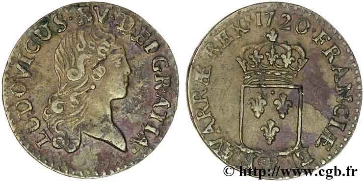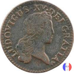 | Incisore Norbert Roettiers.Corso legale 3 denari. Coniata a seguito dell'editto del Luglio 1719 per un valore complessivo di 500.000 livres ossia 40 milioni di pezzi.Il corso di questa moneta fu modificato negli anni per poi essere nuovamente portato a 3 denari nel Marzo 1724.Per l'indicazione degli indici di rarità ci siamo riferiti al volume V.Gadoury,Monnaies Royales Francaises.ed.2012 | ||||||