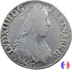 1/2 scudo " au Buste Juvenile" Dritto: ↻ LVD.XIIII.D.G.FR.ET.NAV.REX Busto giovanile del re a destra,laureato, drappeggiato e corazzato all'antica Verso: ↻ SIT.NOMEN.DOMINI.(SZ).BENEDICTVM.(ANNO) Stemma di Francia coronato. | |