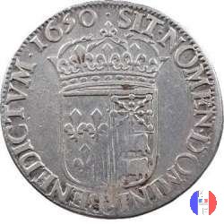 1/2 scudo di Béarn alle 3 corone Dritto: ↻ LVD.XIIII.D.G.FR.ET.NA.RE.BD Busto del re a destra. Verso: ↻ SIT.NOMEN.DOMINI.(SZ).BENEDICTVM.(ANNO) Tre corone separate da tre gigli,al centro il segno di zecca.(mucca) |