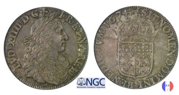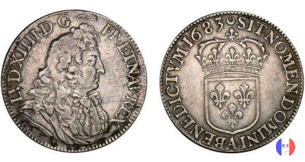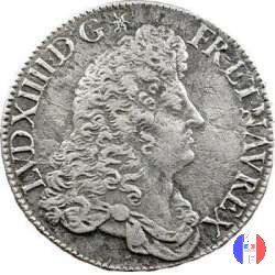 1/2 scudo alla cravatta Dritto: ↻ LVD.XIIII.D.G.FR.ET.NAV.REX Busto del re a destra,corazzato,drappeggiato con cravatta e parrucca. Verso: ↻ SIT.NOMEN.DOMINI.(SZ).BENEDICTVM.(ANNO) Scudo di Francia coronato. | |