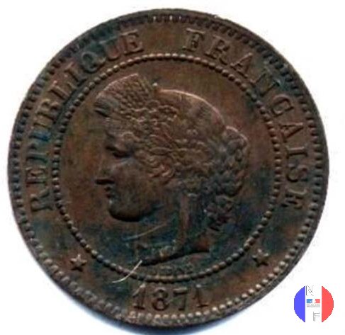 5 centesimi Dritto: RÉPUBLIQUE FRANÇAISE - 1871 - OUDINÉ Busto della dea Cerere (volto a sinistra) coronato da spighe di grano Verso: 5 CENTIMES - LIBERTÉ ÉGALITÉ FRATERNITÉ - (sz) -- | |