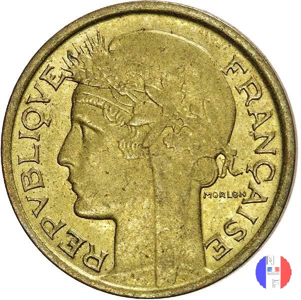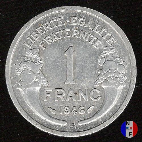 1 franco Dritto: REPUBLIQUE FRANÇAISE - MORLON Busto coronato di grano (volto a sinistra) della Marianna, che indossa il berretto frigio Verso: 1 FRANC - (anno) - LIBERTE-EGALITE FRATERNITE Due cornucopie | |