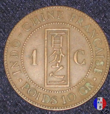 1 centesimo - II tipo Dritto: REPUBLIQUE FRANÇAISE - 1 CENT - (sz) - DANIEL.DUPUIS Due figure femminili Verso: (nghi-ti-phan-nhat) - •INDO-CHINE FRANÇAISE. - (anno) -- | |