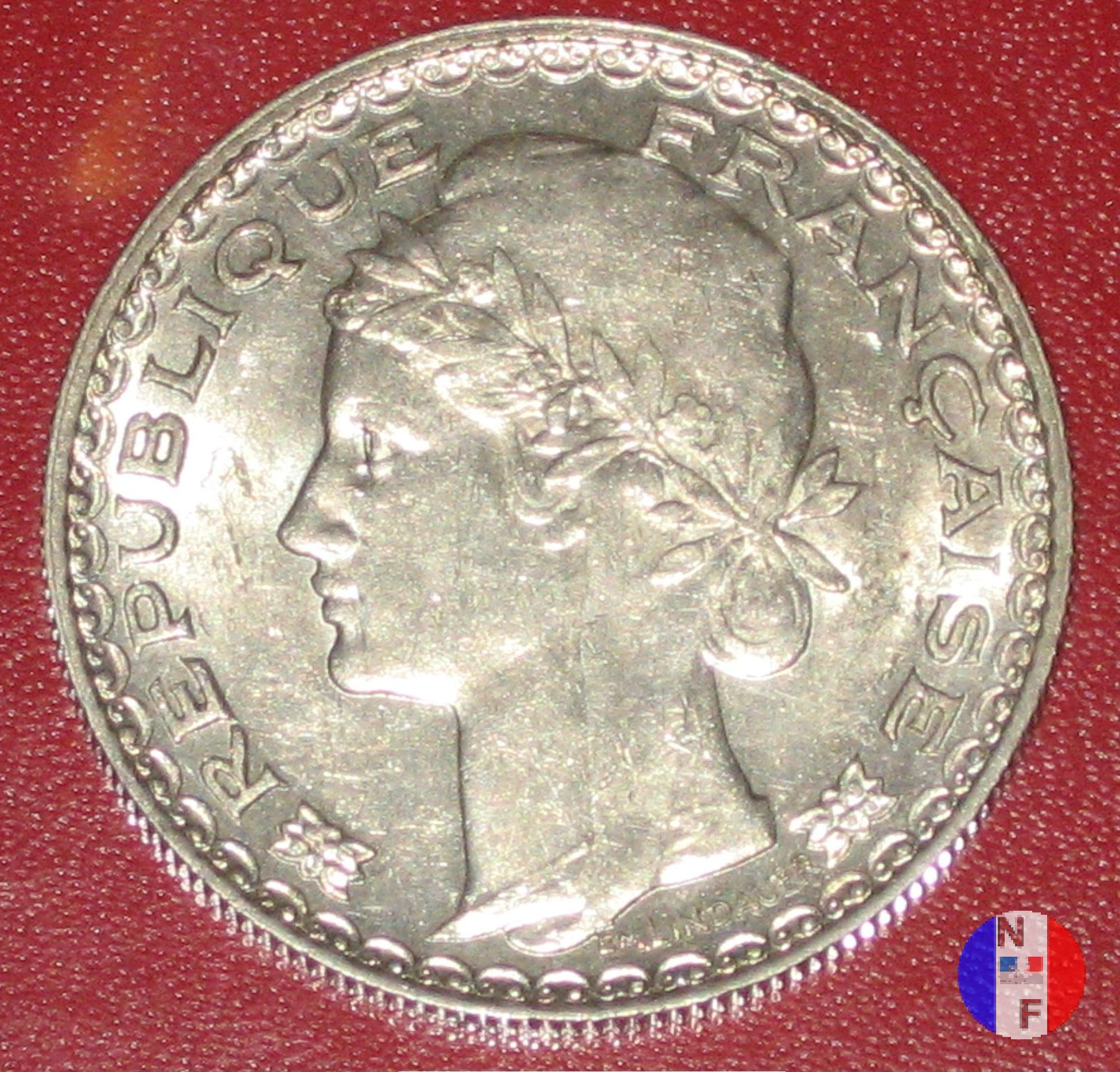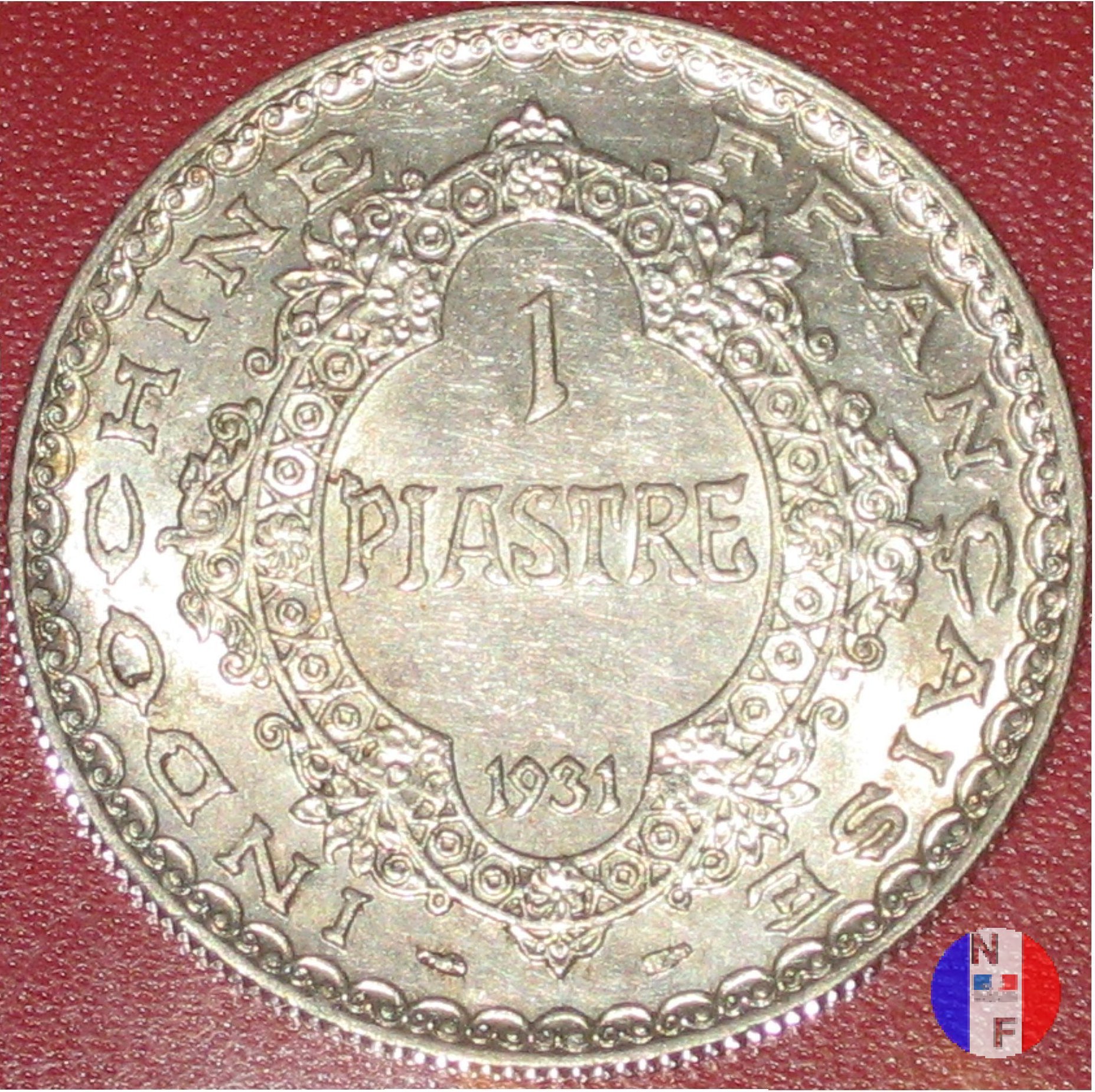 Piastra - Marianna Dritto: REPUBLIQUE FRANÇAISE - EM.LINDAUER Busto lareato (volto a sinistra) della Marianna Verso: 1 PIASTRE - 1931 - INDOCHINE FRANÇAISE Elemento decorativo |