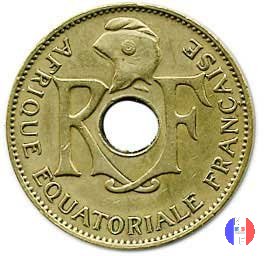 1 franco Libre Dritto: AFRIQUE EQUATORIALE FRANÇAISE - RF Gallo; in alto, scudo con monogramma RF Verso: LIBERTÉ.ÉGALITÉ FRATERNITÉ - SA - CLS - 1 FC - (anno) - HONNEUR PATRIE Croce di Lorena e nastro con le parole LIBERTÉ.ÉGALITÉ FRATERNITÉ | |