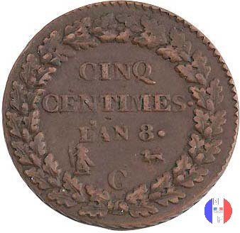 1 centesimo Dritto: REPUBLIQUE FRANÇAISE - Dupré Testa della Libertà (volta a sinistra) che indossa il berretto frigio Verso: UN CENTIME - L'AN 8 - A -- | |