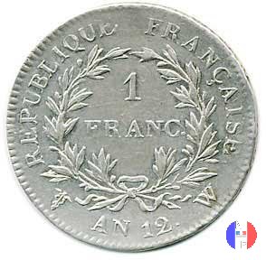 1 franco Dritto: BONAPARTE PREMIER CONSUL - Tiolier Busto (volto a destra) del primo console Napoleone Bonaparte Verso: 1 FRANC - REPUBLIQUE FRANÇAISE - AN (anno) - (sz) Corona formata da due ramoscelli d'ulivo | |