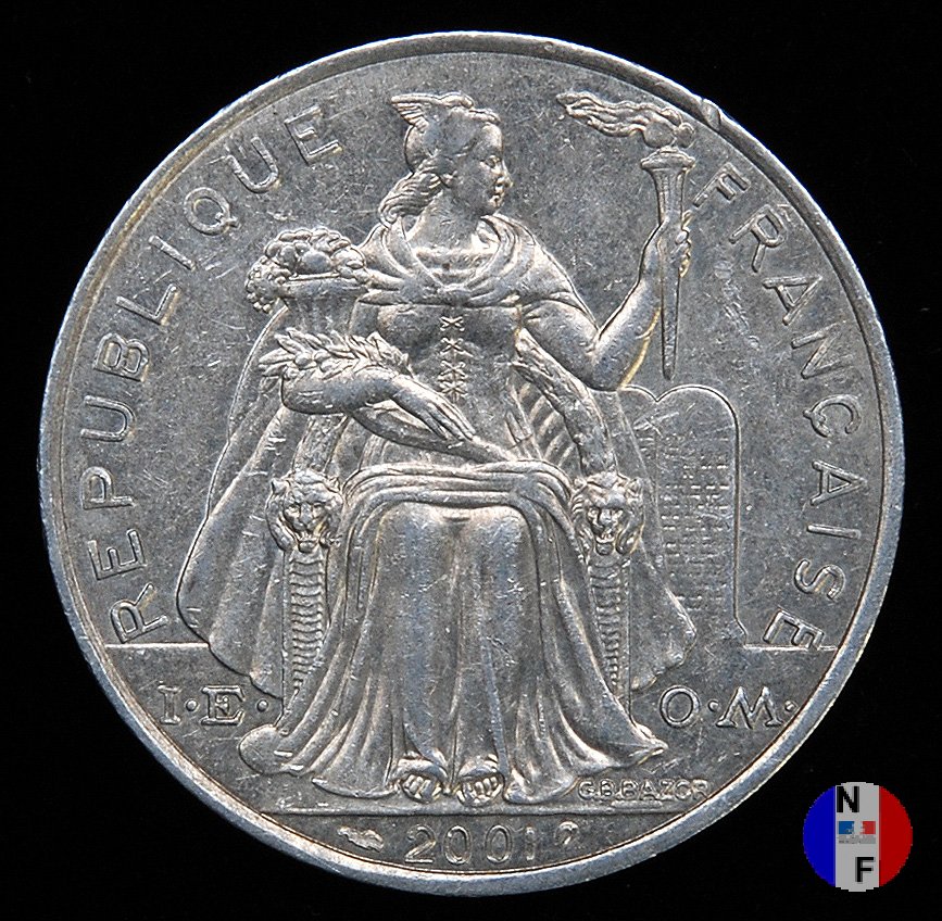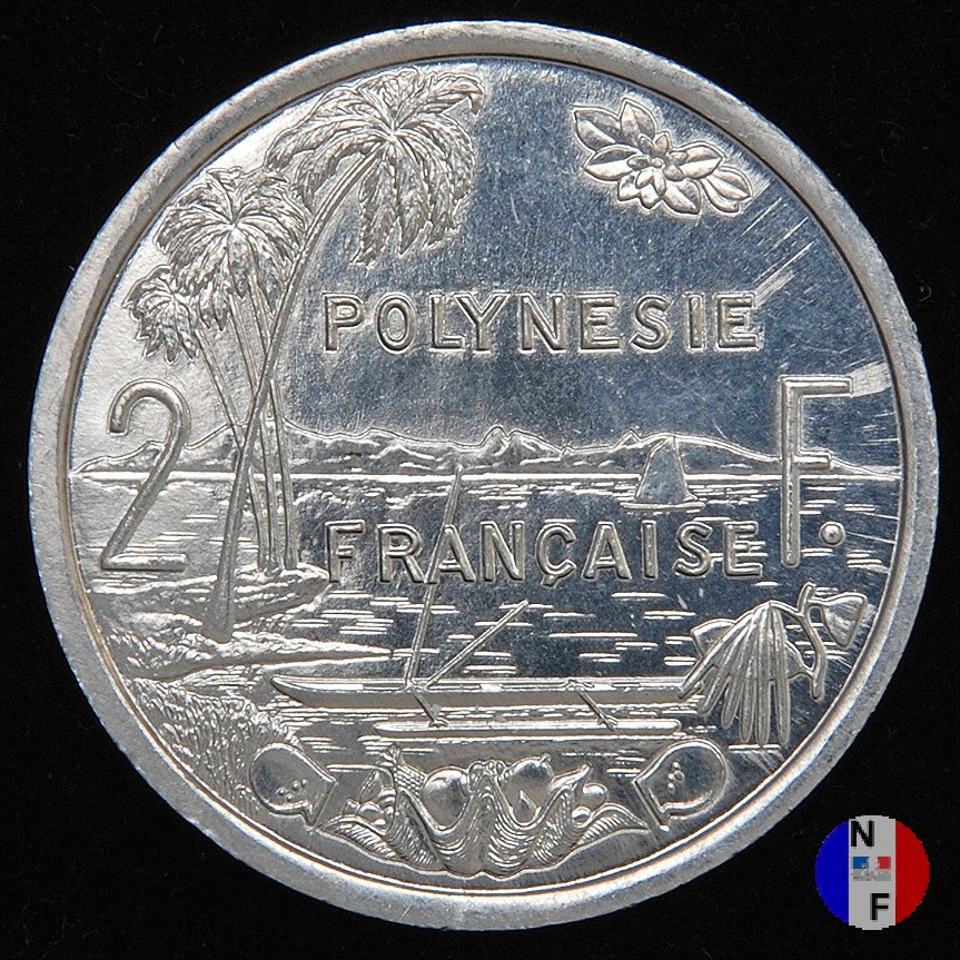 2 franchi Dritto: REPUBLIQUE FRANÇAISE - I.E.O.M. - G B BAZOR - (anno) La Repubblica (elmata e seduta) regge una cornucopia ed una fiaccola. Dietro, tavole su cui sono scolpite le leggi Verso: 2 F. - POLYNESIE FRANÇAISE Paesaggio polinesiano | |