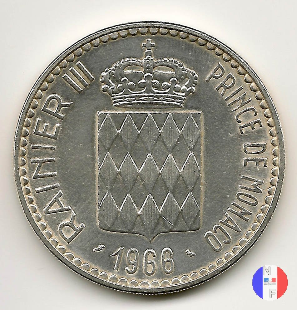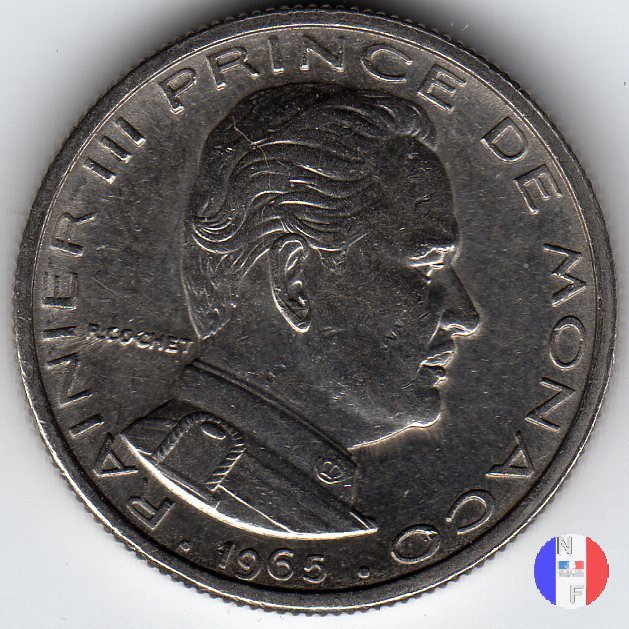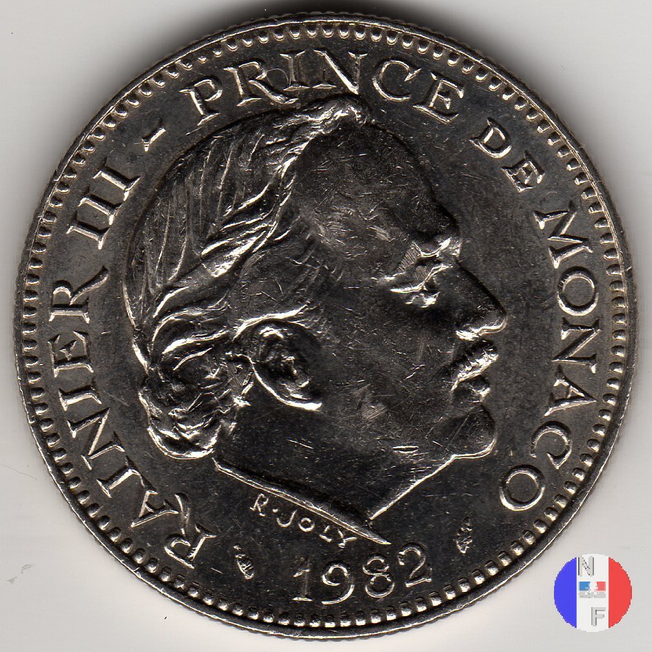 5 franchi - II tipo Dritto: RAINIER III PRINCE DE MONACO - (anno) - R.JOLY Busto (volto a destra) del principe Ranieri III Verso: 5 FRANCS Monogramma coronato del principe Ranieri III | |
