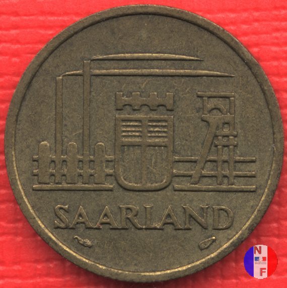 50 franchi Dritto: SAARLAND Stemma della Saar e macchine industriali Verso: 50 - FUNFZIG FRANKEN - 1954 - | |