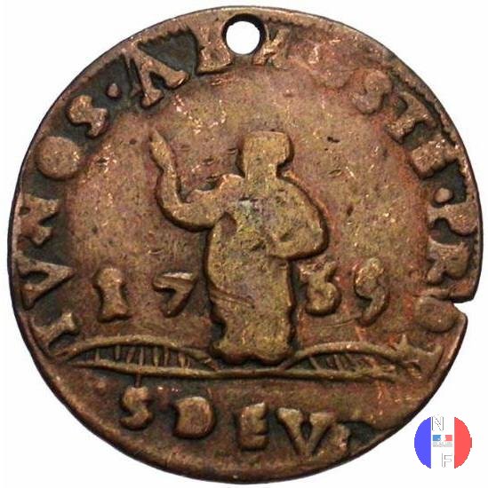 8 denari (dardenna) Dritto: HONORATVS • III • D • G • PRIN • MONECI - D 8 H coronata e affiancata da tre rombi Verso: TV • NOS • AB • HOST • PROTE - 1735 - S DEV Santa Devota tra le onde | |