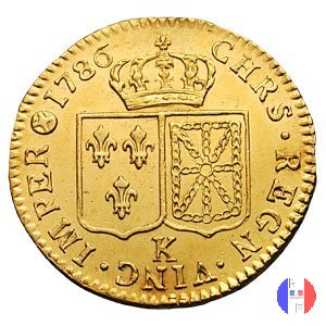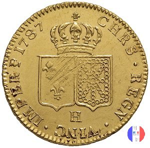 24 livres (luigi d'oro) - II tipo Dritto: LUD • XVI • D • G • FR • ET NAV • REX Busto (volto a sinistra) del re Luigi XVI Verso: CHRS • REGN • VINC • IMPE Gli stemmi di Francia e di Navarra accostati e sormontati da un corona | |