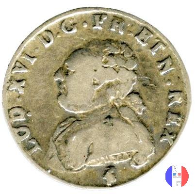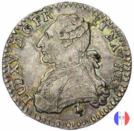 12 sols (1/10 di scudo) Dritto: LUD • XVI • D • G • FR • ET NAV • REX - DUVIV Busto (volto a sinistra) di Luigi XVI, portante une veste ricamata, l'ordine del Santo Spirito ed i capelli annodati sulla nuca da un nastro Verso: SIT NOMEN DOMINI BENEDICTUM - (anno) - (sz) Scudo di Francia ovale coronato, tra due rami d'olivo | |