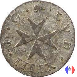 15 denari agli 8L riconiati su vecchi conii Dritto: ↻ LVD • XIIII • D • G • FR • ET • N • R • Monogramma del re Luigi XIV formato da 8 L (4 coppie coronate) e cantonato da 4 gigli,al centro il segno di zecca in un cerchio. Verso: ↻ SIT NOMEN DOMINI BENEDICTVM - (anno) Scudo di Francia coronato | |