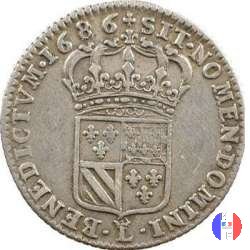 1/12 scudo alle insegne Dritto: ↻ LVD.XIIII.D.G.FR.ET.NAV.REX Busto del re a destra. Verso: ↻ SIT.NOMEN.DOMINI.(SZ).BENEDICTVM.(ANNO) Stemma rotondo di Francia, coronato e posto tra due insegne. | |